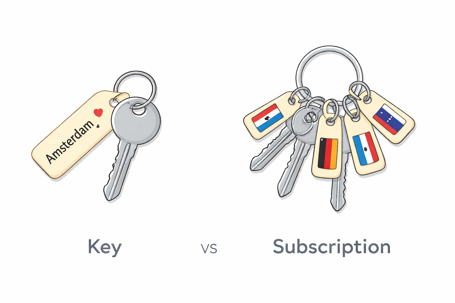 Подписка — это карточка постоянного гостя, которая знает про все ваши отели сразу. Показываете карточку — и приложение само понимает, в каких отелях вам доступны номера, в каких странах, по каким протоколам. Если появился новый сервер — карточка обновляется автоматически, вы ничего не делаете.