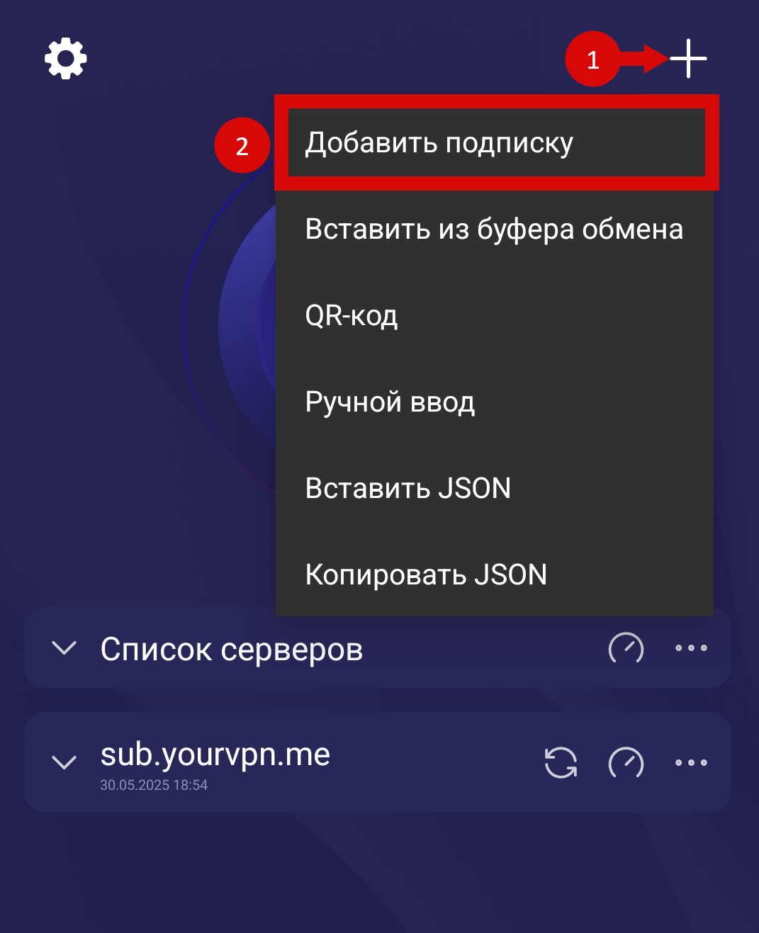 Нажмите на “+” в правом верхнем углу и выберите “Добавить подписку”