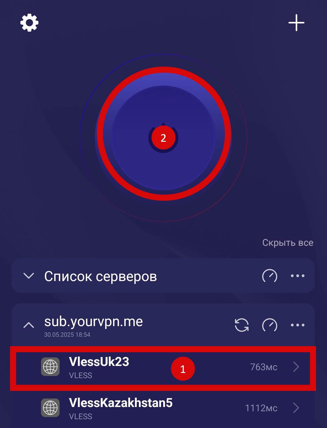 Если нужно - выберите конкретный ключ из подписки, и включите ВПН