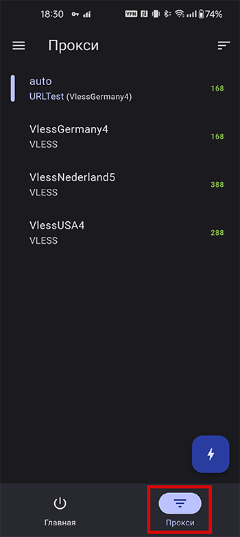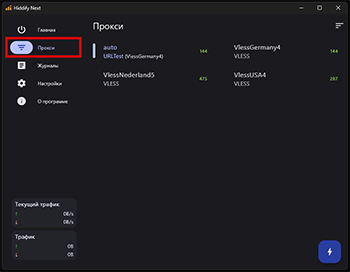 Для просмотра доступных серверов и для выбора сервера вручную, необходимо включить ВПН и перейти в раздел “Прокси”В мобильной версии приложения раздел “Прокси” находится в правом нижнем углу