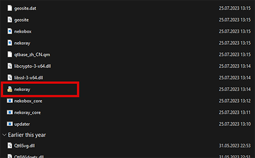 Запустить файл с названием “nekoray.exe” от имени Администратора, и выбрать кнопку “sing-box”.