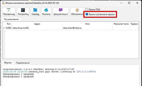 Выбрать “Режим системного прокси” или “Режим TUN” - можно попробовать разные варианты