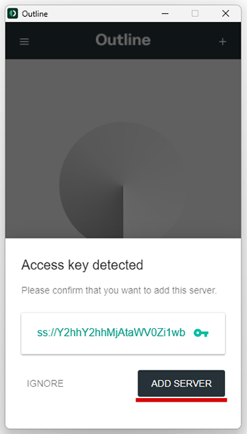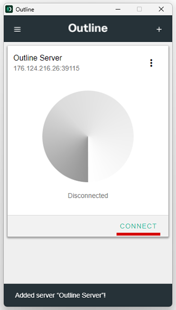 Запустить Outline (если у вас MacOS, обратите внимание, что первоначально приложение открывается в виде иконки на панели меню, если у вас Windows - приложение необходимо запустить от имени Администратора)