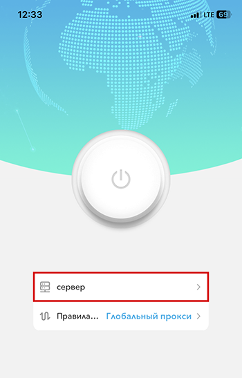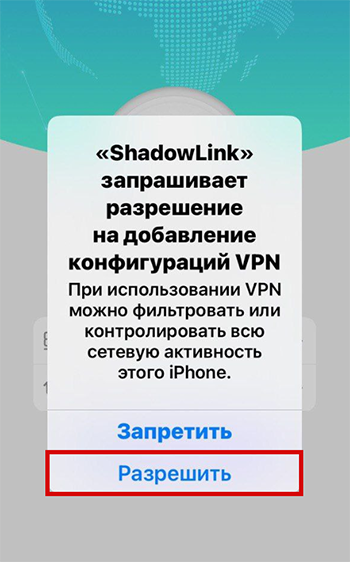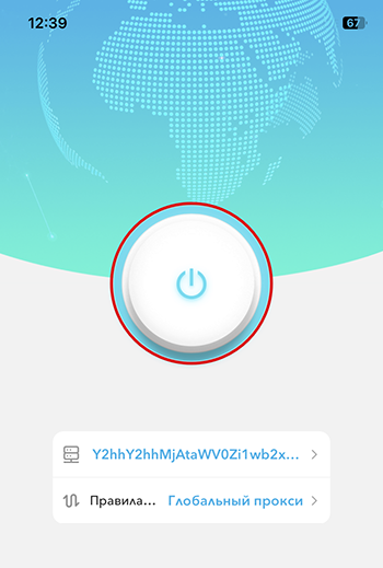 Для подключения/отключения к VPN нажать круглую кнопку в центре экрана (при первом включении ВПНа, телефон может запросить разрешение на создание настроек - необходимо нажать “Разрешить”)