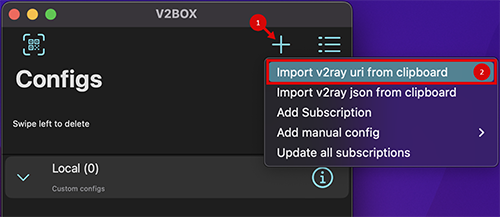 Скопировать в память устройства ранее полученный ключ Перейти в раздел “Configs” В правом верхнем углу нажать на кнопку с плюсом и выбрать “Import v2ray uri from clipboard” Выбрать добавленный сервер нажав на него Вернуться на главный экран по кнопке “Home” в левом нижнем углу Для подключения/отключения к VPN свайпнуть по кнопке внизу экрана Получить ВПН-ключ бесплатно на 3 дня можно в нашем телеграм-боте Your.VPN # Добавление подписки в приложение# Ссылка на приложение: V2Box Телеграм-бот для получения ключа: Your.VPN Поддерживаемые протоколы:✅ Vless ❌ ShadowSocks ❌ Hysteria На ПК запрещено использовать торрент-протоколы (скачивать/раздавать) с включенным ВПН (Пользовательское соглашение, пункт 3, 9)
