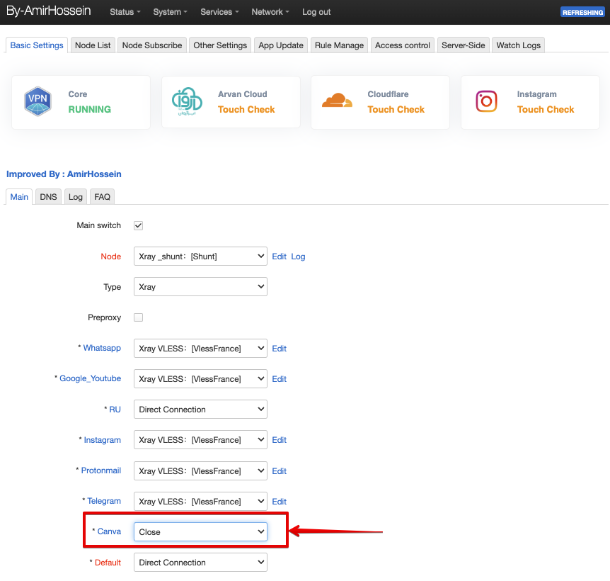 Добавленное правило будет по умолчанию с соединением “Close”. Выберите в выпадающем списке напротив режим работы по аналогии с другими правилами (“Direct Connection” или нужный VPN ключ) и сохраните изменения через "Save&Apply"