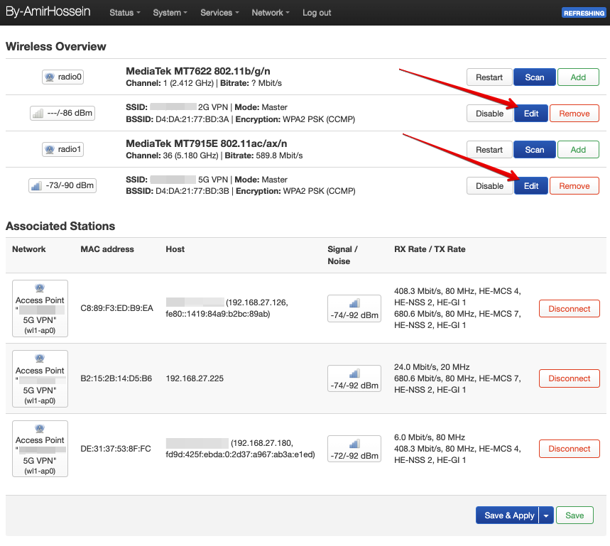 В блоке “Wireless Overview” представленны активные Wi-Fi сети. Для изменения настроек той или иной сети необходимо воспользоваться кнопкой “Edit”